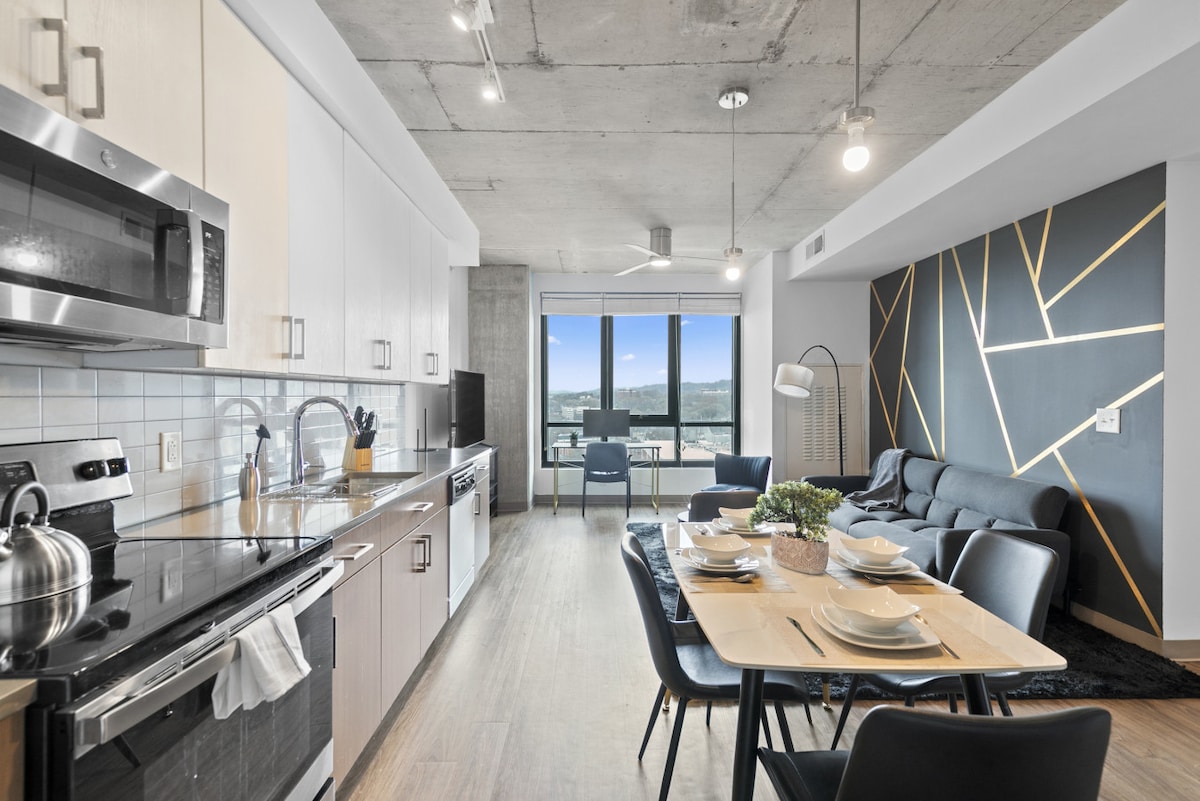 Unwind in this chic studio in the heart of downtown Birmingham. Bright windows frame stunning skyline views, filling the space with natural light. The open design includes a comfortable lounge with smart TV and a sleek kitchen equipped for easy cooking. Fast Wi-Fi keeps you connected, while the city’s best dining, shopping, and entertainment are just steps away—making this the perfect spot for both relaxation and adventure.