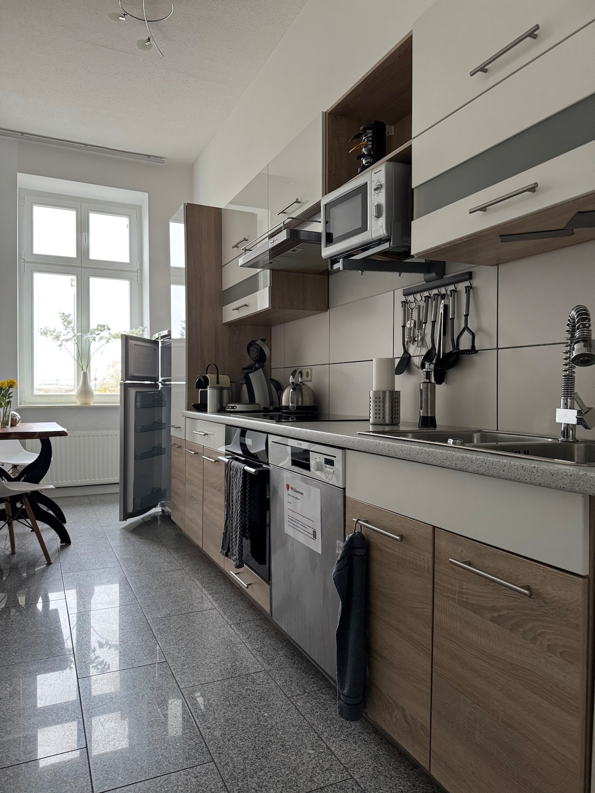 You are centrally located in Leipzig – in the best part of the city in the lively southern suburb. Here are some highlights: ⭑ Free parking ✯ Quiet apartment ⭑ 2 bedrooms ✯ Linens, towels ✯ Modern bathroom ✯ Fully equipped kitchen ✯ Desks ✯ TV with Amazon Prime Video series and movies included + TV ✯ Fast Wifi ✯ Floor-level shower ✯ Soap, shampoo, shower gel ⭑ Nespresso coffee machine ✯ Stove + oven ✯ Dishwasher ✯ Microwave ⭑ Washer ✯ Dryer