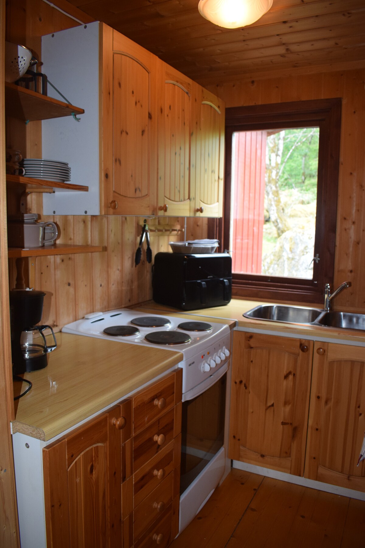 This is a place far away from city streets, noise and hustle and bustle. The area is rural overlooking fjords and mountains. A little steep road and a few turns lead you here to quiet and peace secluded in a small rustic home with a lot of nature available. The apartment is decorated with a small section with a kitchen containing the essentials for making simple meals, and with easy furnishings. Has a tiled bathroom with a shower. WiFi.