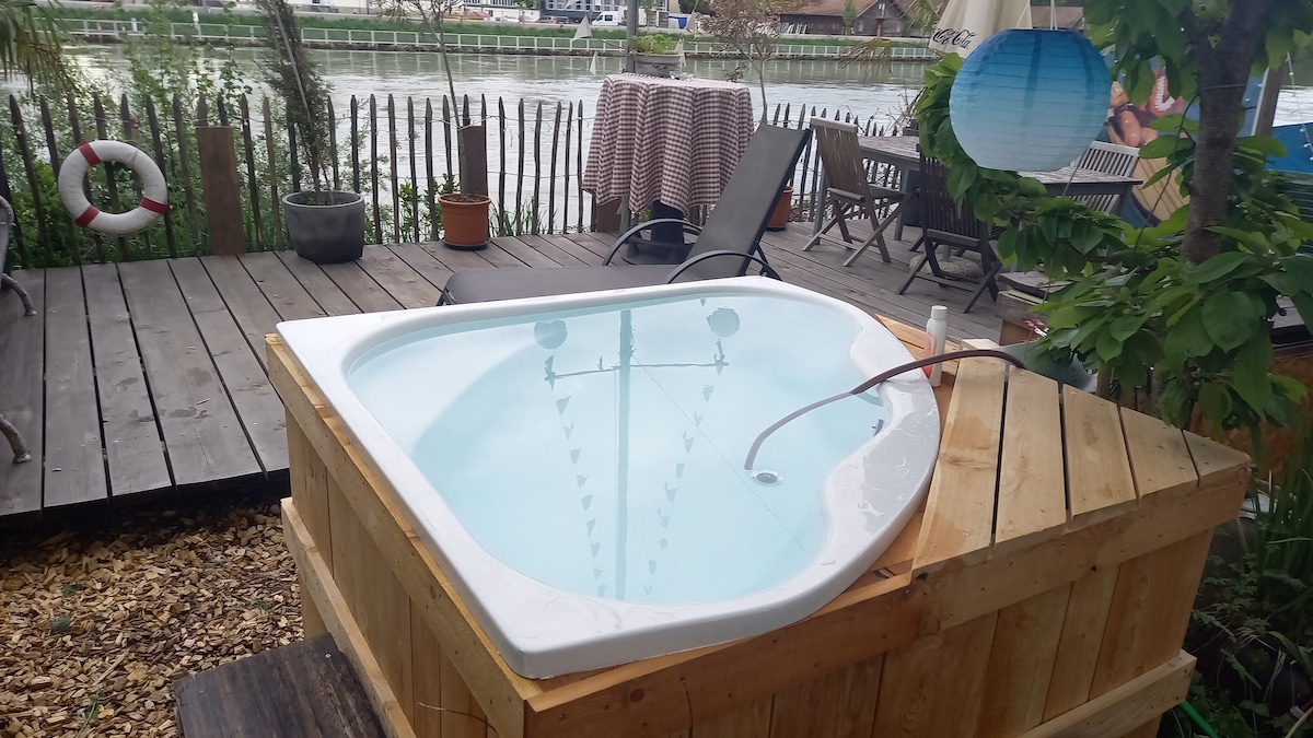 A real invitation to a stationary journey, the 16 m² trailer of the Domaine du Châtelet welcomes you in the heart of nature, on the edge of a stream whose gentle murmur will lull you throughout your stay. Furnished with care and charm, it offers an ideal setting to recharge your batteries, and rest in complete serenity in a green setting. For an even more relaxing experience, enjoy our optional relaxation area equipped with a sauna, a SPA, as well as wellness and Ayurvedic massages.
