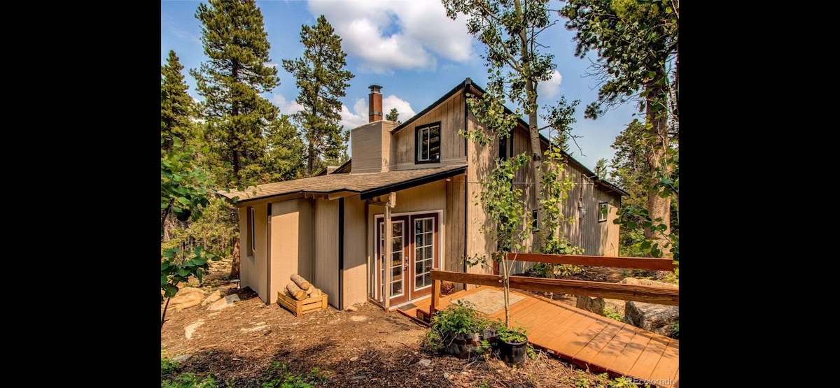 Sunny modern mountain cabin surrounded by aspens and expansive mountain views. Discover a less discovered part of the Rockies. Soak in the hot tub and stargaze amongst the trees as the snow begins to fall. Enjoy cozy evenings around the fireplace or outdoor fire pit. Located near the iconic Peak-to-Peak scenic highway. Only 45 min to Red Rocks, 15 min to Nederland/Eldora Ski Area, and 10 min to the casinos in downtown Black Hawk. Beautiful hr drive on backroads to RMNP.