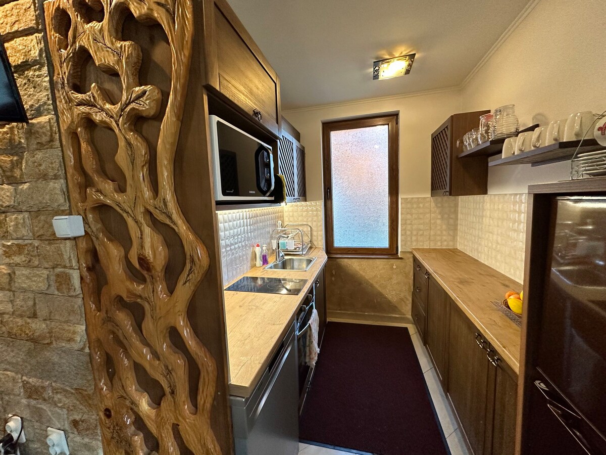 Welcome to our brand new luxury apartment in Bansko, nestled amidst the breathtaking Pirin mountain range. Immerse yourself in a unique cave-inspired retreat adorned with rustic stones and warm wood accents. The double bed promises ultimate comfort, while hidden LED lights create a magical ambiance. Experience a seamless blend of nature and opulence, with panoramic views of Bansko's ski resort. Your mountain escape awaits, where every detail whispers tranquility and elegance