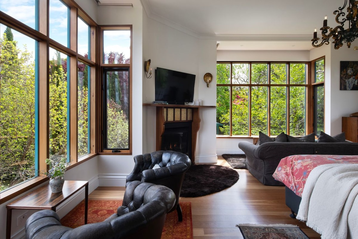 The Hepburn Treehouse is a haven in the heart of picturesque Hepburn Springs. This bespoke accommodation for two is tucked away amongst the trees in a striking A-frame studio cabin with mid-century inspired styling. Meticulously & lovingly curated and filled with personal furnishings, objects and books gathered from around the world. Floor to ceiling windows, luxury linens, wood fire, soaring ceilings & spa bath ensure an unforgettable stay in this tranquil treehouse.
