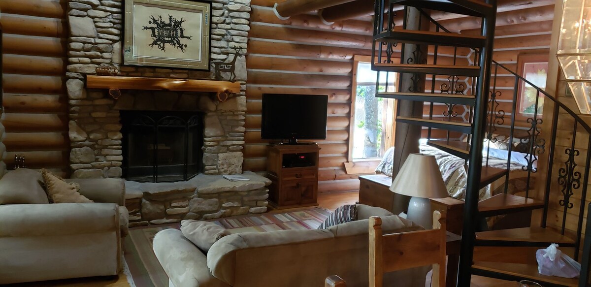 Take it easy at this unique and tranquil getaway. This one bedroom cabin overlooking a creek is minutes away from restaurants and entertainment yet secluded enough for privacy and peace. It has a full kitchen, 50 inch tv, WiFi, coffee bar, deck and much more! You now have the option as a two bedroom if you need more space check out our other listing with the original creekside log cabin! Book your stay today!