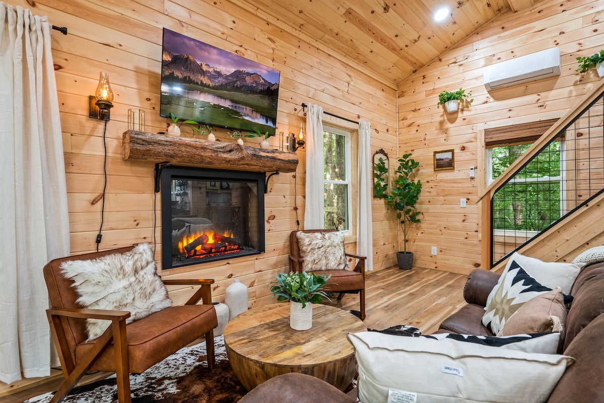 ❇ Perfect couples getaway ❇ that’s what you’ll say the minute you walk through the door of this “NEW” tiny cabin, w/ king bed, full kitchen, fireplace, located here in the Great Smoky Mnts. Perfect for honeymooners or solo travelers. ⭐ Enjoy the hottub or just sit on the deck in the rockers or swings enjoying the quiet peaceful setting as you listen to the wildlife stir around you. A short drive to Gatlinburg, Pigeon Forge and Sevierville. Go and explore or just stay and relax, you choose!