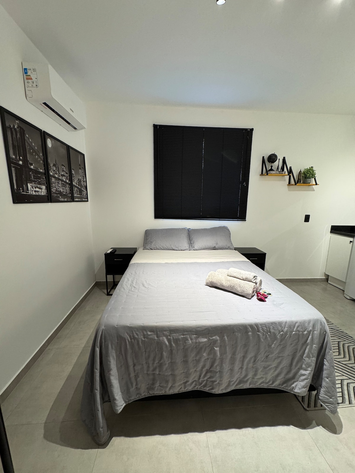Relaxe neste espaço calmo e cheio de estilo com banheira de imersão aquecida. apto com: 📍01 cama casal tamanho queen 📍01 cama solteiro 📍banheira de imersão aquecida individual 📍tv 42” com Netflix liberado 📍internet 300mbps 📍mesa home office 📍blender para fazer seus shakes 📍 airfryer, microondas, sanduicheira 📍cozedor de ovos elétrico 📍máquina café expresso 📍chaleira elétrica, garrafa térmica 📍enxoval incluso 01 vaga estacionamento . não possui hidromassagem capc Max 100 kg