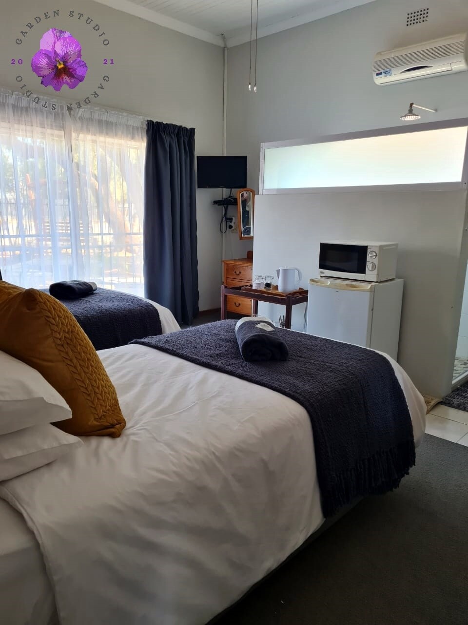 A fantastic 2 sleeper garden studio attached to the hosts house. Located on a quiet residential road within very close proximity of the town. 2 x 3/4 beds or 1 x Super King Size. This accommodation has been newly renovated with a beautiful shower, toilet & basin en-suite and a kitchenette with microwave, fridge, kettle and crockery & cutlery. Host will provide tea, coffee, sugar & milk. Room has own patio with garden furniture and DSTV. Private entrance and secure off-street parking.