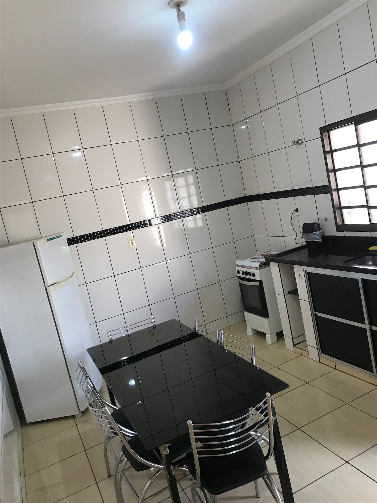 Localização excelente. Dois minutos andando de padaria, supermercado e beira do lago. Simples, mas muito aconchegante. - um quarto com cama de casal e guarda roupas, um colchão de solteiro e um colchão de casal inflável - sala e cozinha conjugadas com um sofá cama, fogão e geladeira. - banheiro com ótimo chuveiro .