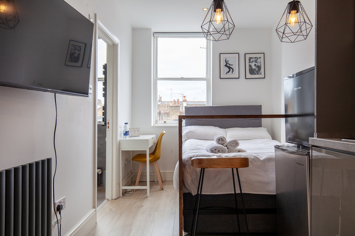 Experience the charm of historic Marylebone in this chic studio, set in a Georgian townhouse from the 1850s. Designed for comfort and style, it features an award-winning premium mattress and a cozy sofa bed, ensuring a restful stay. Located in Marylebone’s historic conservation area, it blends period charm with modern convenience—just a short walk from Oxford Street, Baker Street, and Regent’s Park. Live like a local and enjoy a stylish retreat in one of London’s most sought-after neighborhoods.