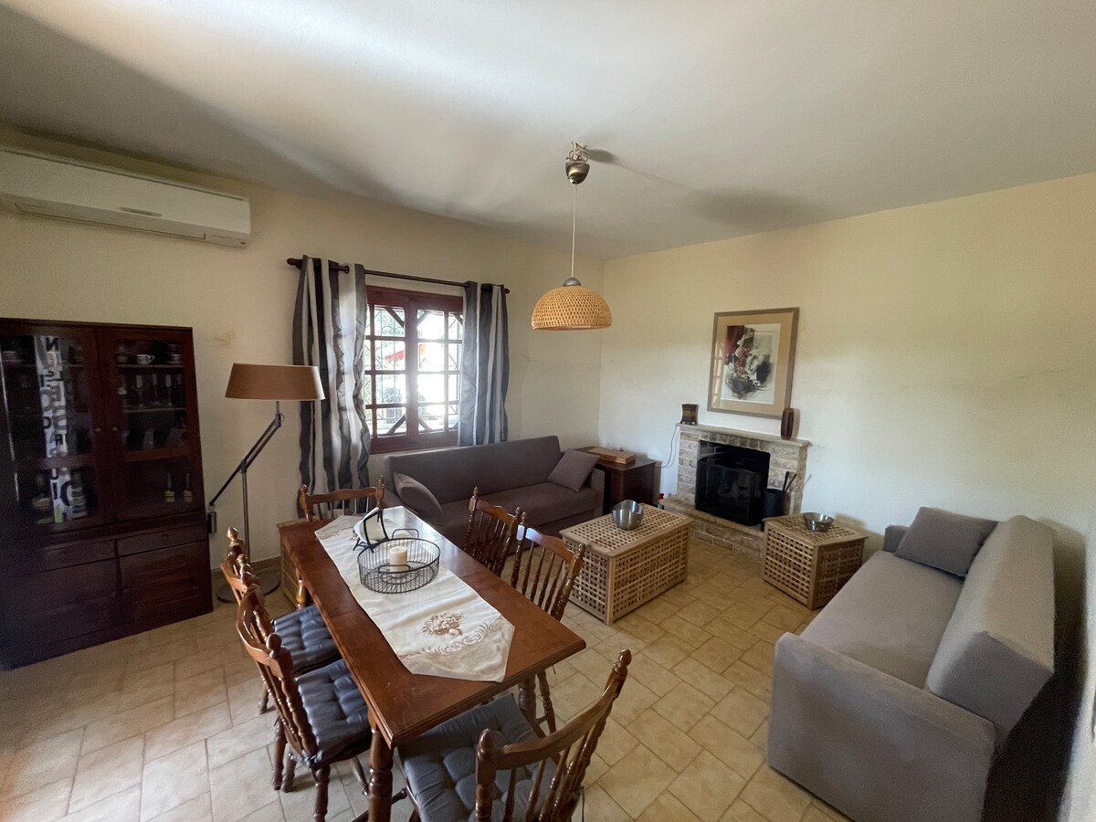 Airconditioned summer house of 100sqm on a farm of 2500sqm total surface, full of trees and flowers, situated in a rural area, only 1200m from the beach of Vrachati, with 3 fully equipped bedrooms, 2 modern bathrooms and kitchen-living room, storage room and 2 parking spaces.
