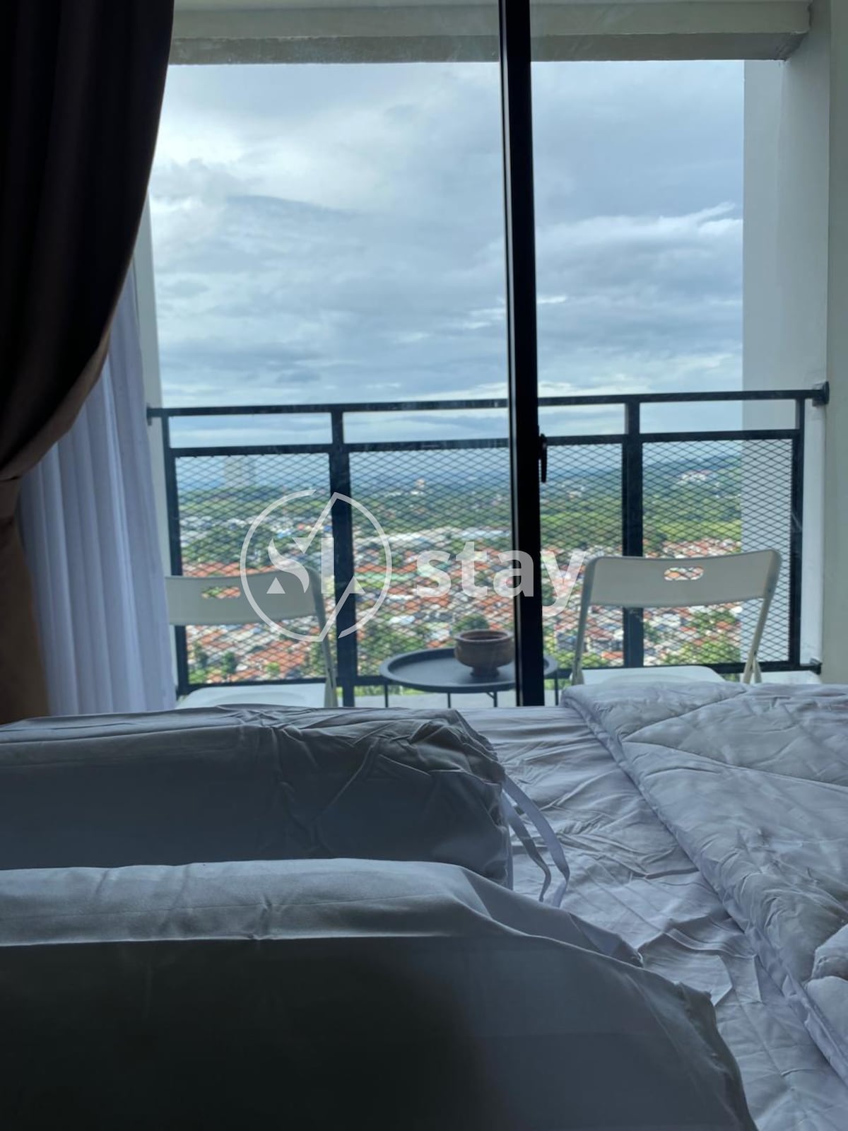 Relax at this peaceful place to stay. Studio apartment with balcony face to mountain. bath towel and amenities are provided. There are kids and infinity pool on 7th fl. Strategic location: 4km to Aeon Mall Sentul and IKEA 8KM to taman budaya 10Km to gunung pancar 2 min walk to Asiop training ground Facilities: Smart TV Wifi (limited quota) AC Working Desk Kitchen Set Water Heater Drinking Water Mini Fridge Confirm booking at least 24 hours before ariving
