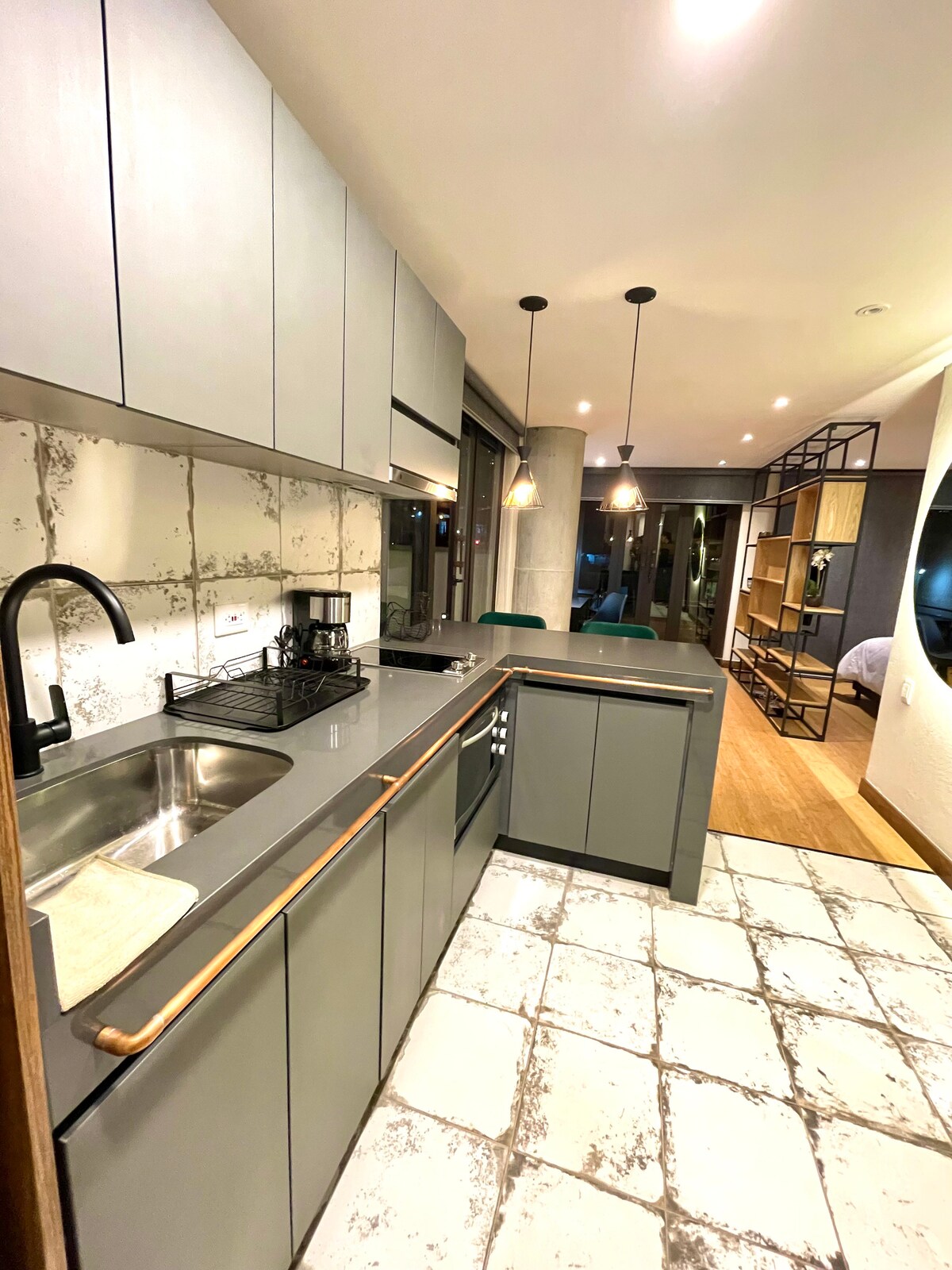 A stylish brand new place to stay perfectly comfortable for a short or long period of time. It has clearly everything you might need for having a unique and unforgettable experience overlooking the beautiful mountains and view of Bogota during the day and night. A great queen size bed, a sofa-bed, excellent bathroom, and for those that likes cooking, it has all sort of gadgets for facilitating so.Nearby you will find the best clubs such Theatron, among many others, grt-bars and shopping spots.