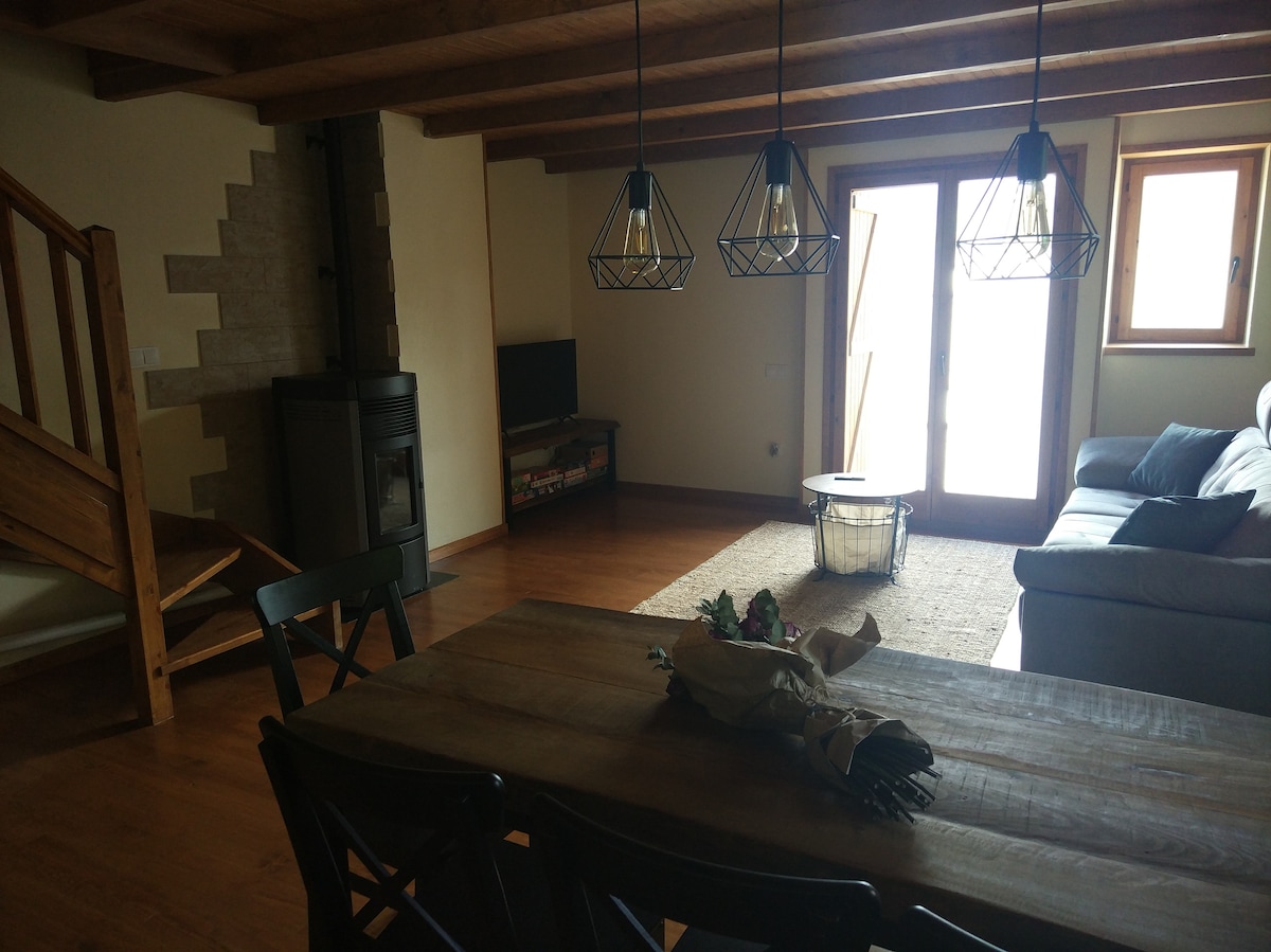 Duplex apartment (Dreta) Free Wi-Fi. Two bedrooms (maximum 5 people), full bathroom, living room with fully equipped kitchenette. Bed linen, duvets and towels are included. SPECTACULAR VIEWS. All the apartments in which the house is divided have free access to the private Terrace-Viewpoint of the accommodation. Park in front of the house. 3km from Vielha and 15km from Baqueira. We have two very similar apartments (Dreta i Esquerra), between the two they have a capacity for 10 people.