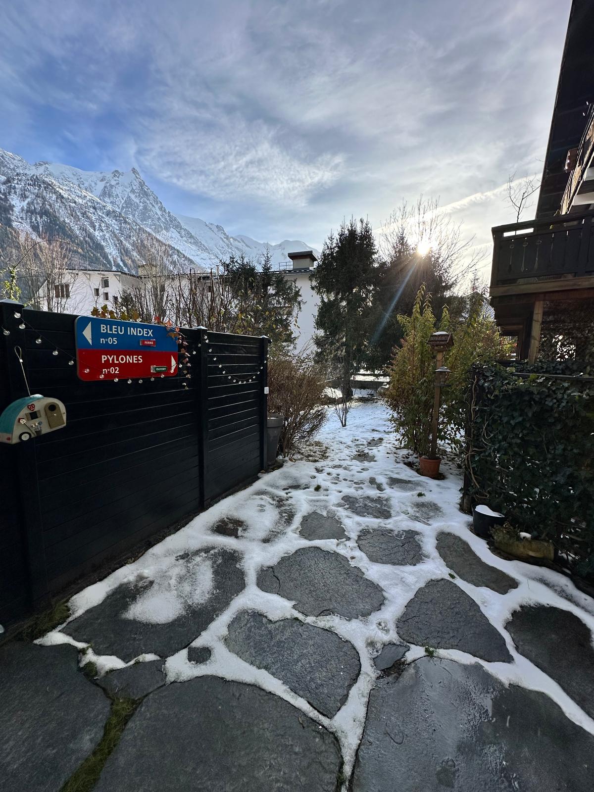 Large studio in a chalet in a very quiet area, exceptional view of the Mont Blanc range. South-facing terrace, Brévent cable car 200 m away. The city center is a 10-minute walk away from February 9 and until mid-March, rentals are from Saturday to Saturday minimum stay 4 nights.