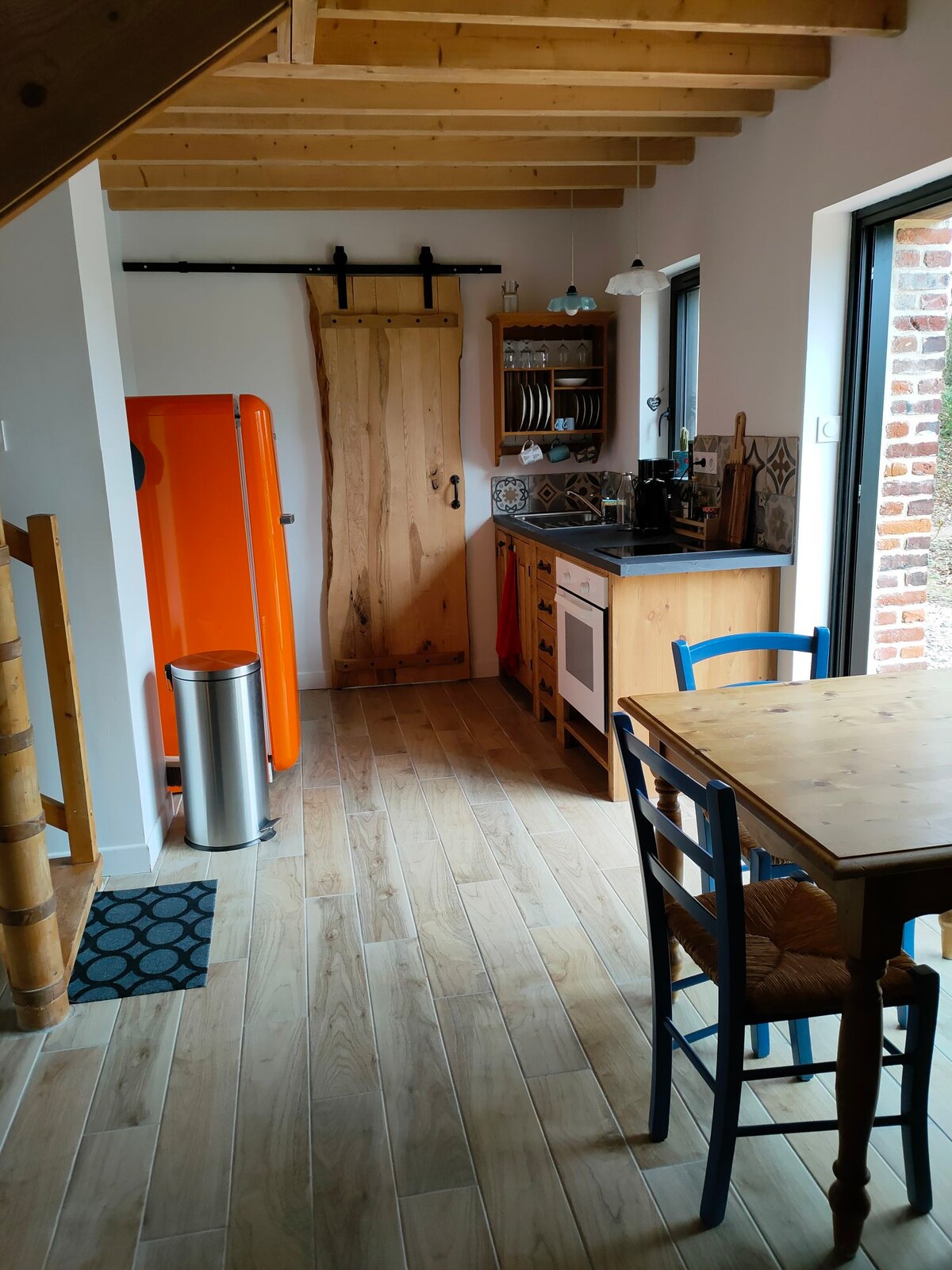 Charming old half-timbered bread oven, located on the edge of the stream, it consists of: - Living room with a wood-burning stove, - Kitchen, - Upstairs: - shower/WC room accessible by a miller ladder (see photos), -bedroom with a 160 x 200 bed overlooking the stream, accessible by a miller ladder (see photos), Bedroom and bathroom do not communicate. Garden furniture, BBQ, private parking, firewood included Note: another cottage, the Stone House, is 100 m away