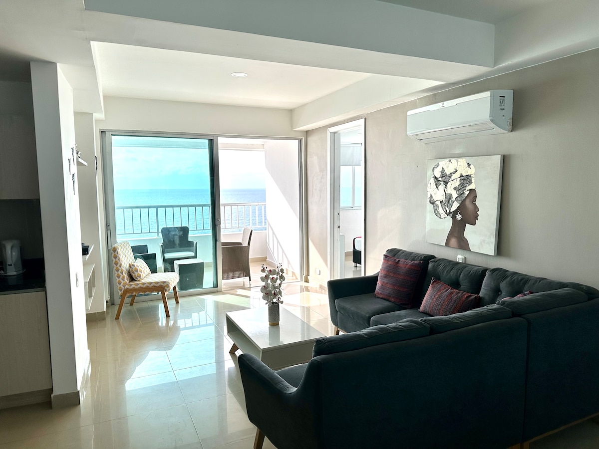 ✨ Welcome to your retreat in Cartagena: a luxury high-floor apartment facing the sea, with two private balconies and a 180° panoramic view of the Caribbean and the bay. Designed for your comfort, it features a modern living room with floor-to-ceiling windows, a fully equipped kitchen, fast WiFi, and digital check-in. Enjoy the infinity pool, poolside bar, and ocean-view gym. Located in Bocagrande, steps from the beach and minutes from the Walled City. 🌊🌴