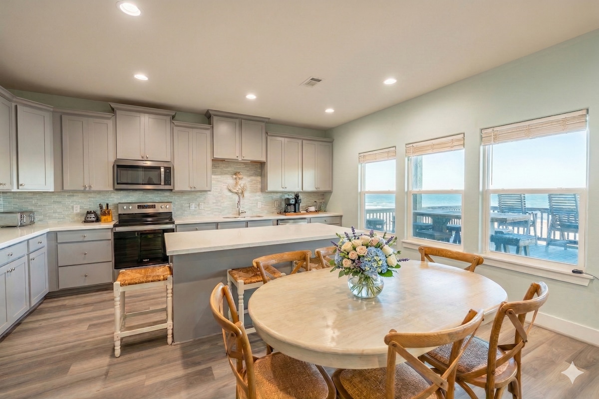 Nothing beats the sound of the waves and the ocean breeze in the morning. That’s what you’ll enjoy at the Red Mermaid Retreat, an awesome 4-bedroom beach house, where you can walk to the beach in seconds! This home is cozy and elegant, with everything you need to have a blast. You can also cook a yummy meal in the kitchen, snuggle on the sofa with a book, or sip a drink on the balcony, while making memories with your loved ones.