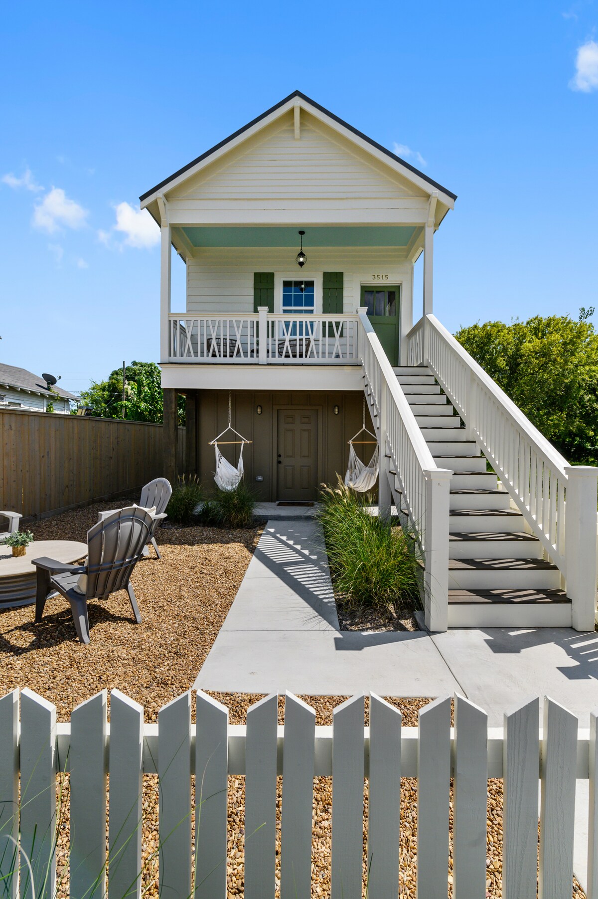 This rich in history tiny house has been newly renovated for DIY series "Restoring Galveston". Moved from its original location to its current resting spot it is the perfect distance between downtown and the beach. The home sleeps 5 with 2 bedrooms and a full bath. Primary bedroom also has direct access to the bathroom for privacy. Full kitchen makes cooking on vacation a breeze. Coffee setup complete with Kcups, creamer and multiple sweeteners. Outdoor lounging on front porch or downstairs!
