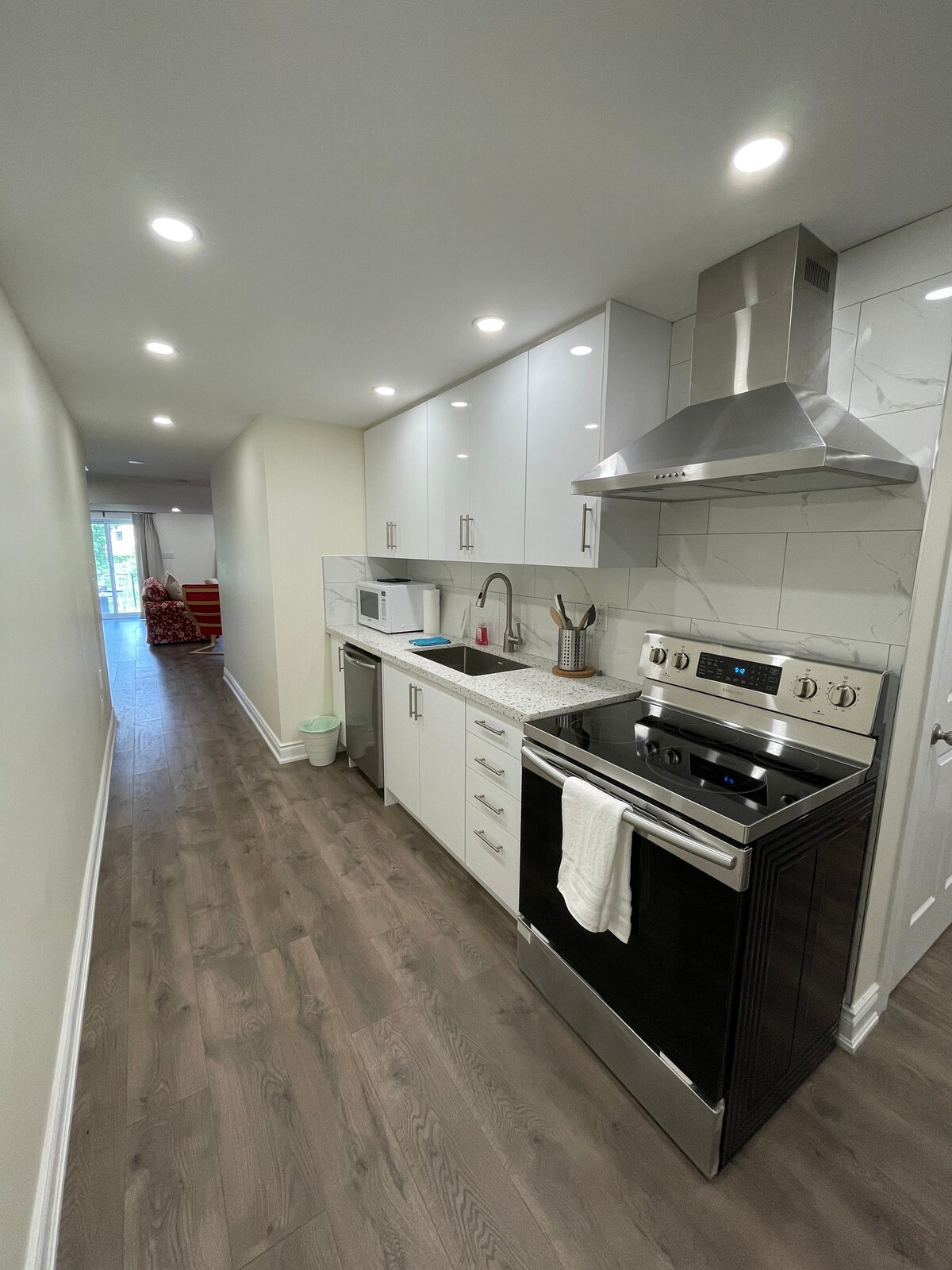 Enjoy a stylish and peaceful stay at this centrally located one-bedroom lower-level unit, perfect for both leisure and business travelers. With your private entrance, parking, and all the essentials, it’s your ideal home away from home. Features include a full kitchen, bathroom, internet, smart TV, one Queen and one sofa bed, and a functional workspace. Steps from FreshCo, Walmart, restaurants, and services. Minutes to Vaughan Mills, Canada’s Wonderland, Cortellucci Hospital and transit.