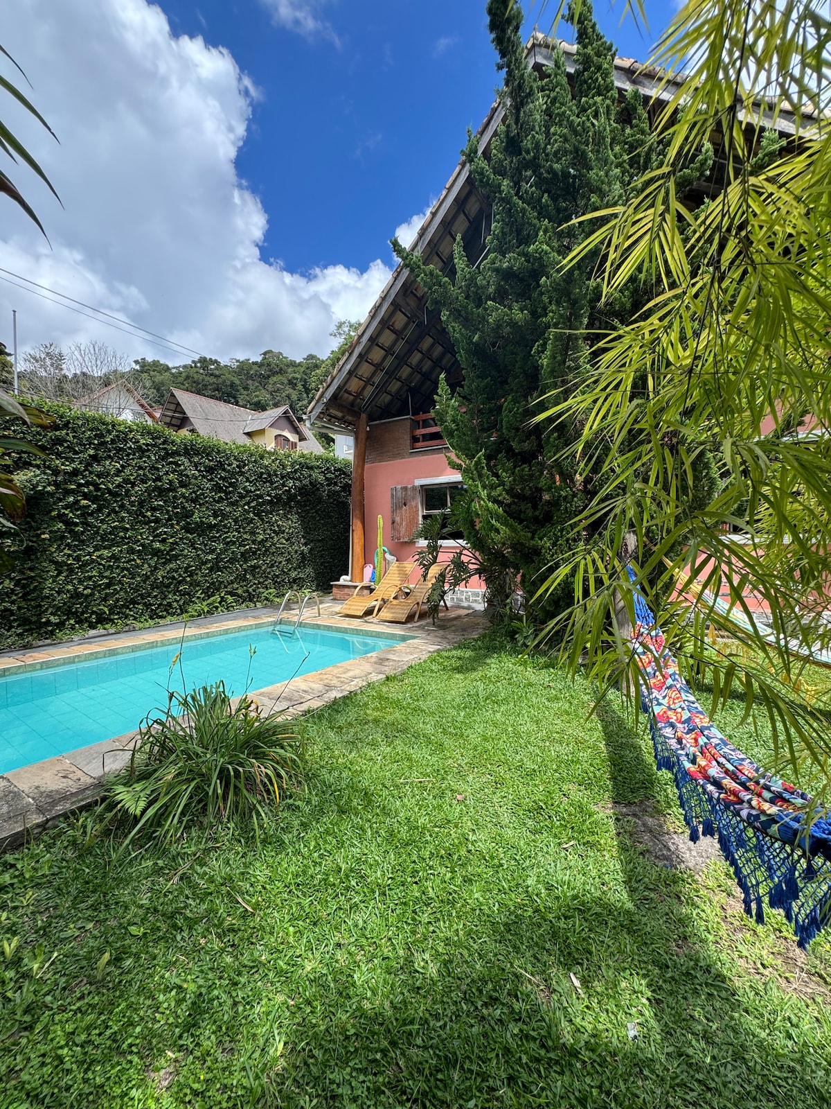 Ideal place to live unforgettable days in the midst of nature just 4.5 km from the commercial, gastronomic and tourist center in the city of Nova Friburgo/RJ. The house is equipped with a full kitchen (stove, microwave oven, refrigerator, blender, sandwich maker and utensils in general...), Wi-Fi, living room with smart TV, cozy rooms, private parking and ample gourmet space with barbecue with skewer, grill, board and knife, all amid gardens and nature reserve vegetation.