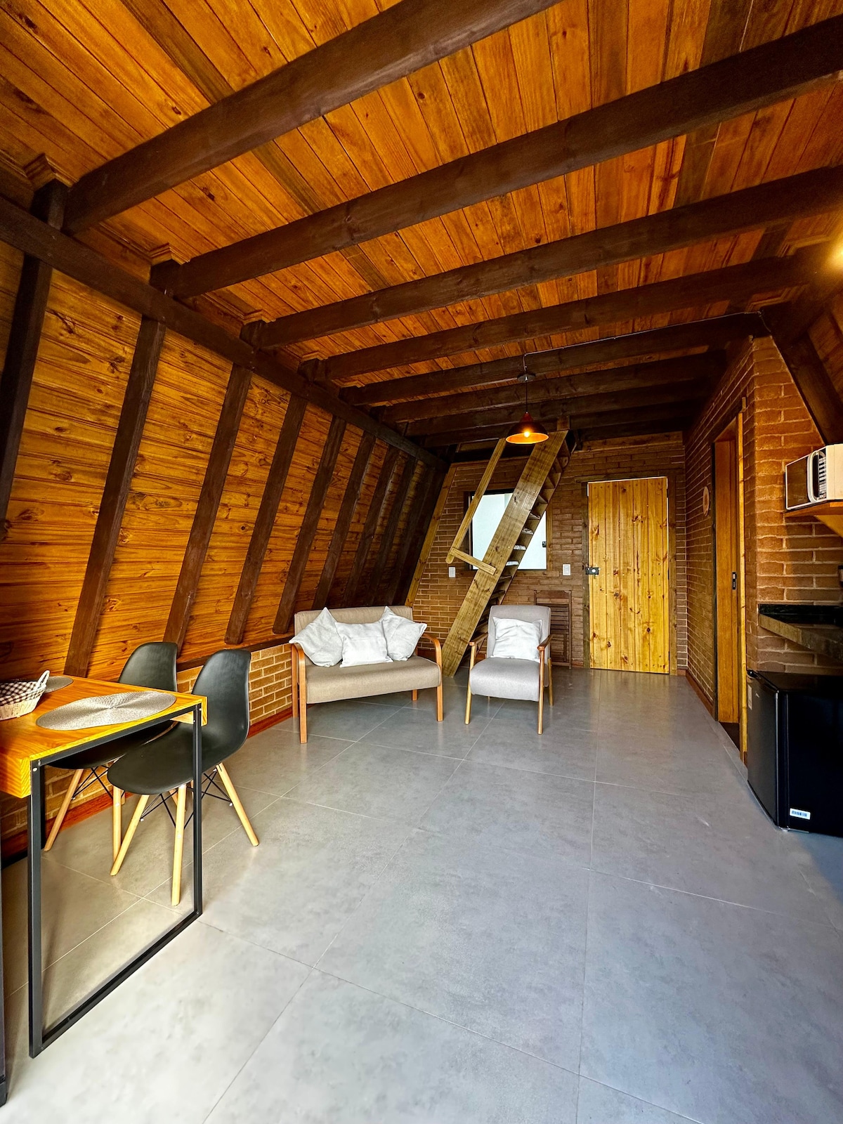Awaken your senses at our coffee farm in the heart of nature. Relax and enjoy an authentic and rustic atmosphere. In this loft, we offer 1 bedroom with a double bed and, in the lower part of the room, another cozy and comfortable double bed for a memorable stay. For entertainment, we have a pool table, chess, swimming pool, court, sauna, hammock, fire pit and enjoy a walk through the coffee plantations. Book now and live the full experience of country life!
