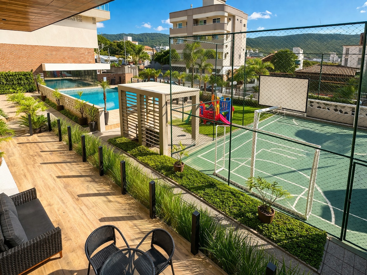 High-end condominium with a swimming pool, Jacuzzi. The apartment is beautiful and very well located. Very close to Bombas beach, market, pharmacies. Do everything on foot. Our apartment is ideal for families or couples who want to enjoy the best of Bombinhas and the region.