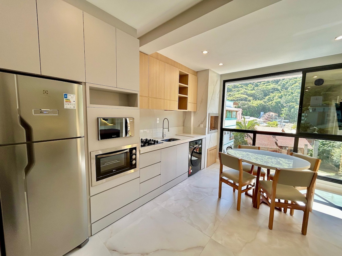 Fully equipped studio in the center of Bombinhas, designed for those who value structure and a strategic location. Just 180m from the beach, with spectacular views of the city and the sea, it offers a queen-size bed, sofa bed, air conditioning, Smart TV, and a equipped kitchen. The gourmet area with a barbecue enhances the experience. The building has a 24-hour reception, covered parking, and a rooftop with a swimming pool and sea views. Book now and experience Bombinhas with more exclusivity.