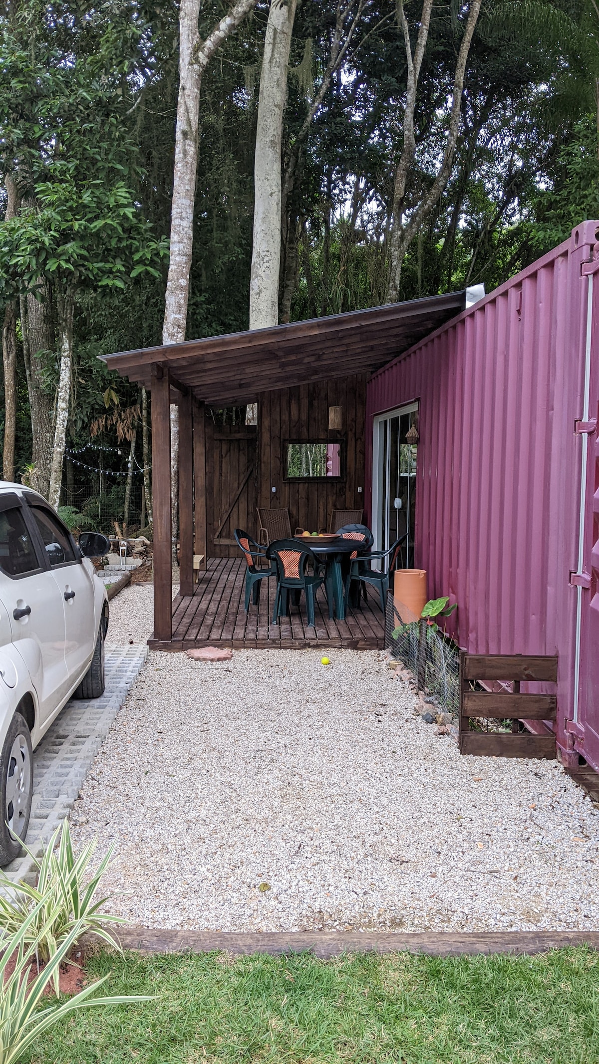 Welcome to the container house, A cozy and familiar space, lovingly designed to accommodate families seeking a destination to enjoy the charming beaches of the municipality of Bombinhas. With a strategic location 150 meters from Zimbros Beach, and easy access to the beaches of Canto Grande, Mariscal, Bombas, Bombinhas and Quatro Ilhas. We have an outdoor area that features a barbecue and beautiful landscaping, ideal for enjoying the late afternoon!