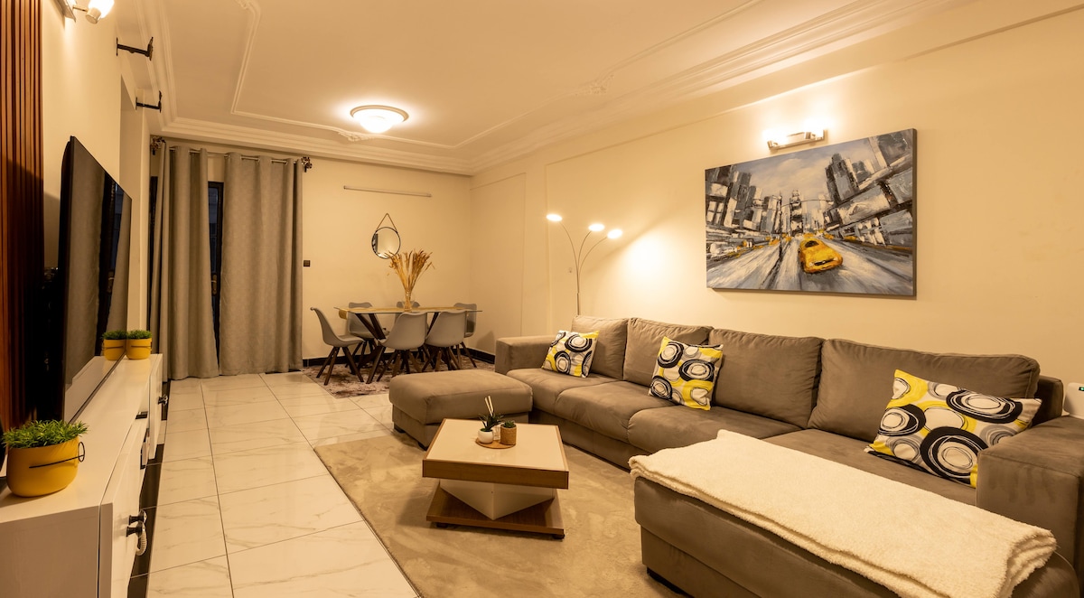 Spacious, luxurious, high standing, clean, quiet, cocooning accommodation located in the heart of the city of Douala with a balcony, a terrace with an unbeatable view of the city for a safe and unforgettable stay. Every detail of this elegant and modern apartment has been designed to offer exceptional decoration, superior quality and unparalleled comfort. Netflix and fiber optic internet connection available. Generator and parking in the basement. 24/7 security