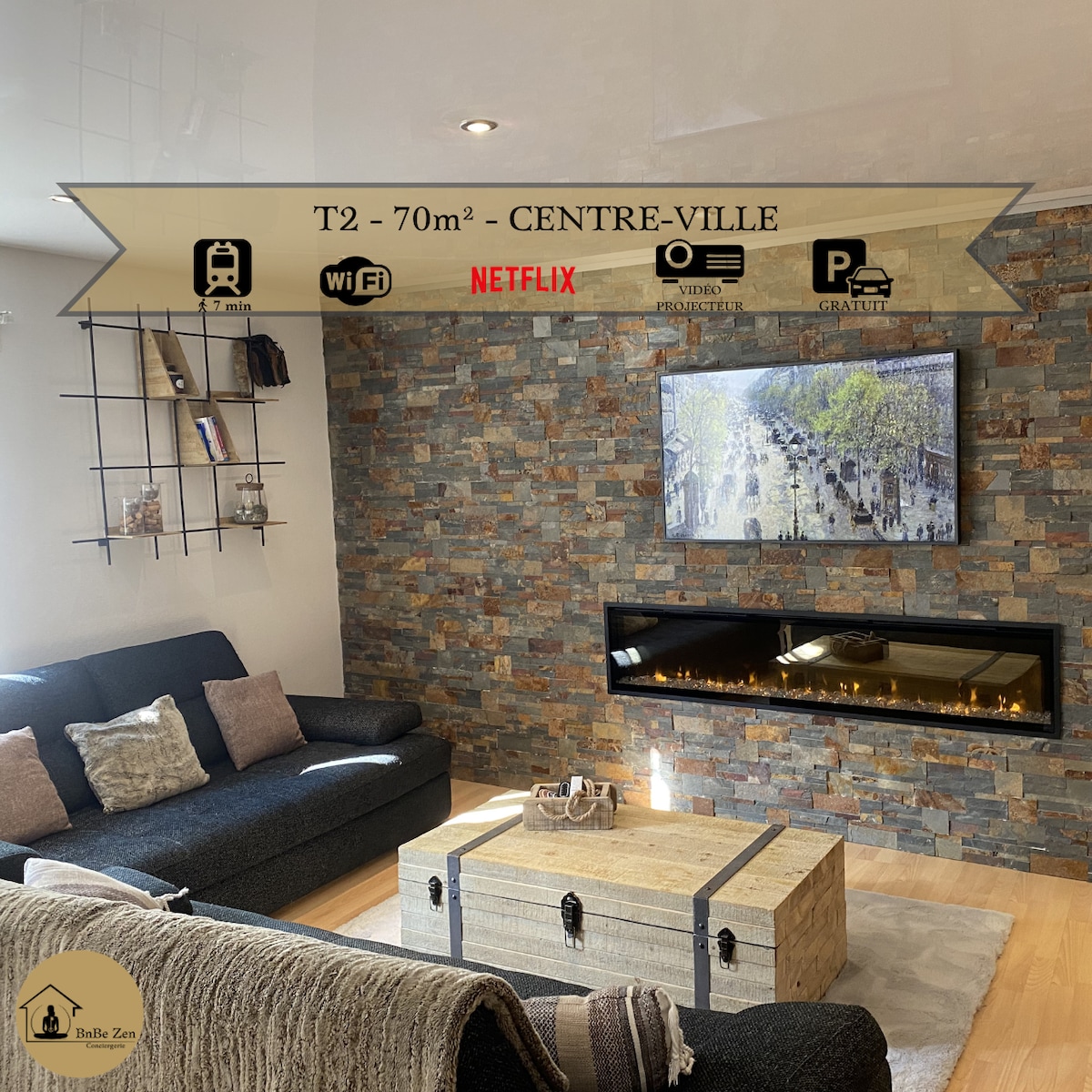 48 m2 2-room apartment ideally located in the heart of Cran-Gevrier | Annecy, in a lively area next to the La Turbine cultural center. This home is located on the 4th floor with elevator and has a garage in the basement of the building. Ideal location 5 minutes by car, 7 minutes by bike and 20 minutes walk (Thiou promenade) from the historic center of Annecy. Shops, restaurants, bars, bakery and grocery store at the foot of the building. WiFi - 1 Bedroom - Garage - Amazon Prime