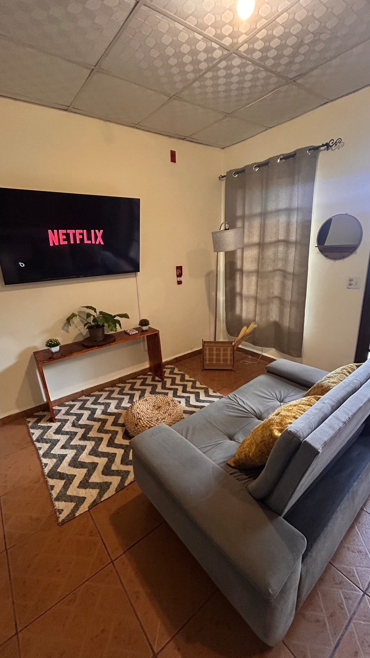 At CASA EJECUTIVA, this work-ready studio offers comfort and practicality for remote work. Enjoy spectacular views from the king bed, relax, and take in the sights of the town. A comfortable desk, fast internet, solar panels, a battery bank, and backup water ensure you stay connected and powered during outages. The fully equipped kitchen completes the space, providing everything needed for both work and leisure.