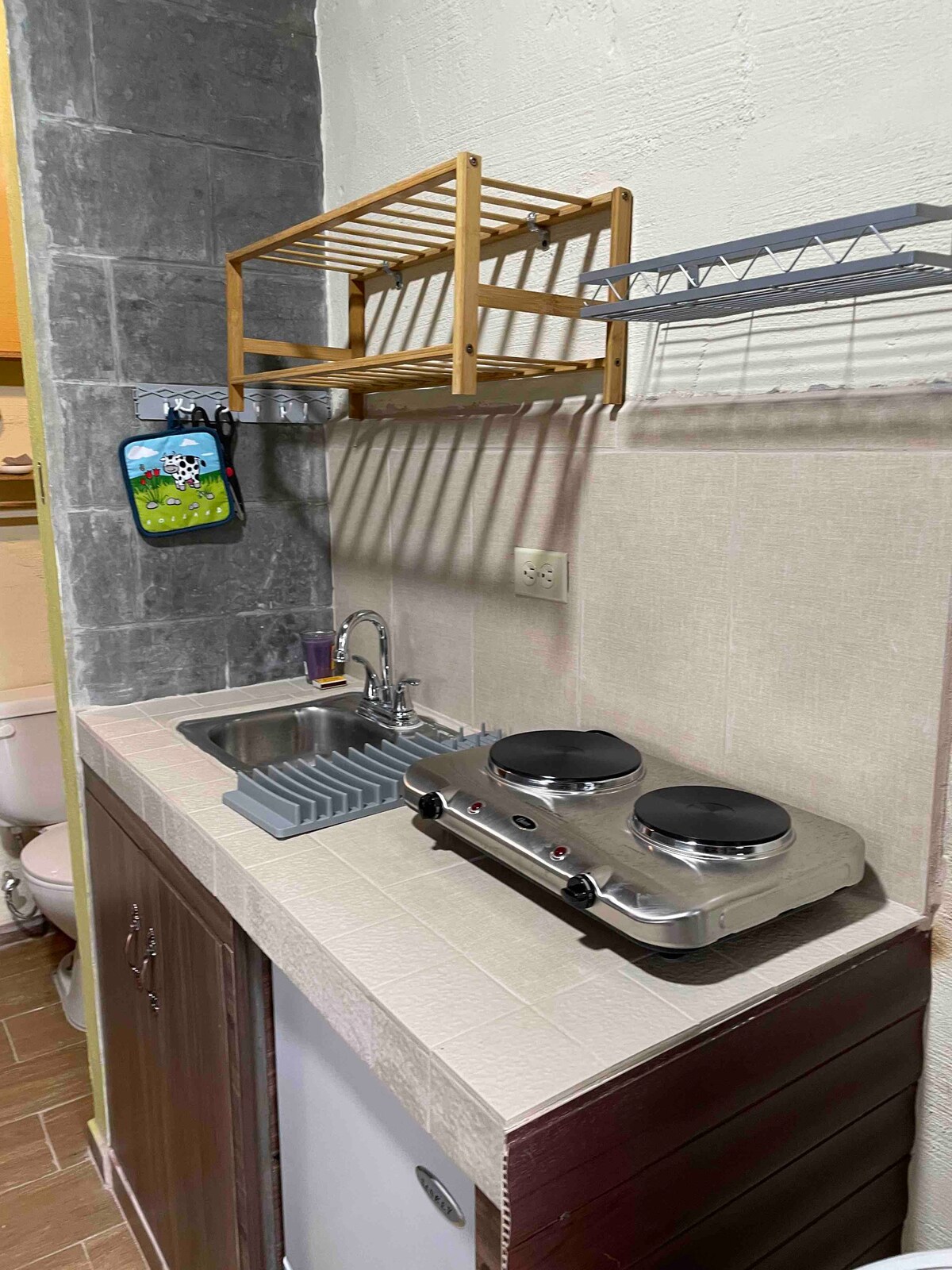 Very cozy small cottage but spacious tucked between the trees and only 7 minutes ride to downtown Boquete. The cottage has a washer and dryer and very nice finishes. A comfortable king size bed and kitchenette with all the utensils needed to prepare breakfast or a small meal. Public service transportation is available just as you open the gate and leave the premises. Wi-Fi service available and reliable. Hot water on the shower, sink and kitchen faucets.