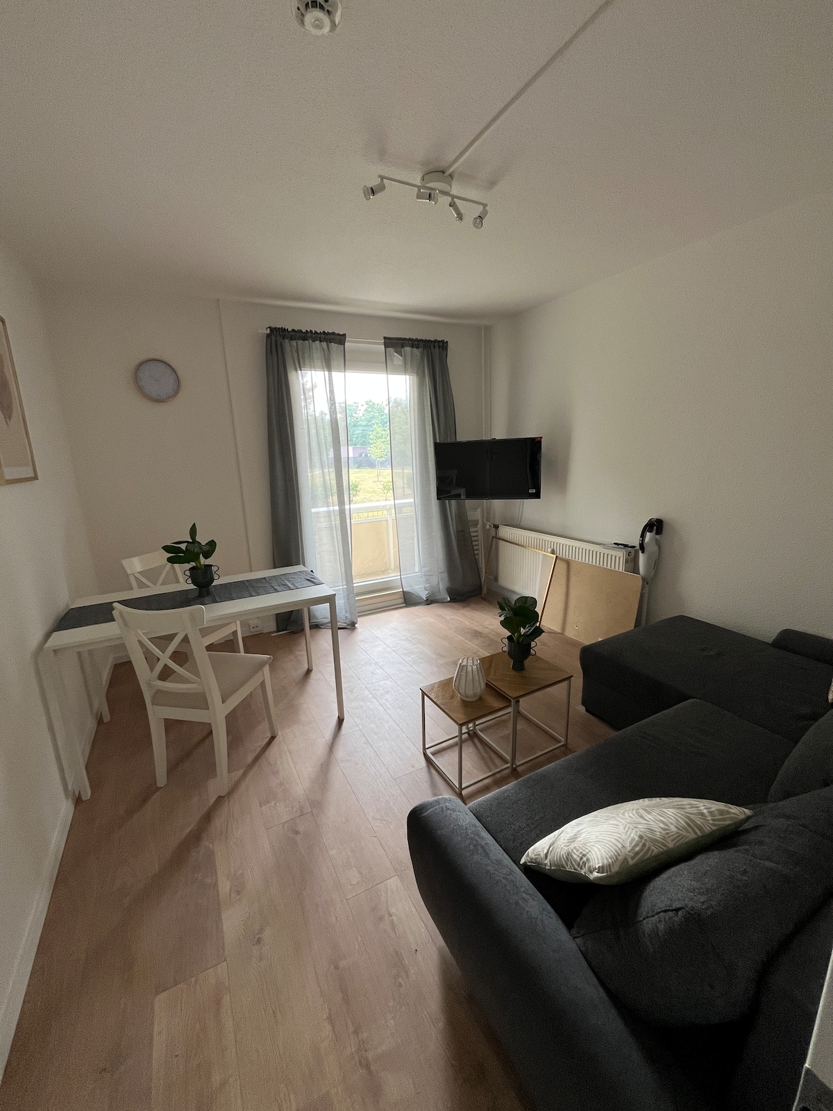 Charmante Ferienwohnung im Stadtteil Hopfengarten. Gute Verkehrsanbindung, sowohl zur Autobahn als auch zum ÖVP. Unsere Wohnung mit separatem Eingang wartet auf euch im 1. OG unseres Hauses. Sie besteht aus einem Schlafzimmer mit Doppelbett, einer kleinen Küche, einem Bad mit Badewanne und Dusche sowie einem Wohnzimmer mit einem Schlafsofa, sodass wir auch 4 Gästen eine angenehme Übernachtung bieten können. Bei Bedarf steht ein Kinder-Reisebett zur Verfügung.