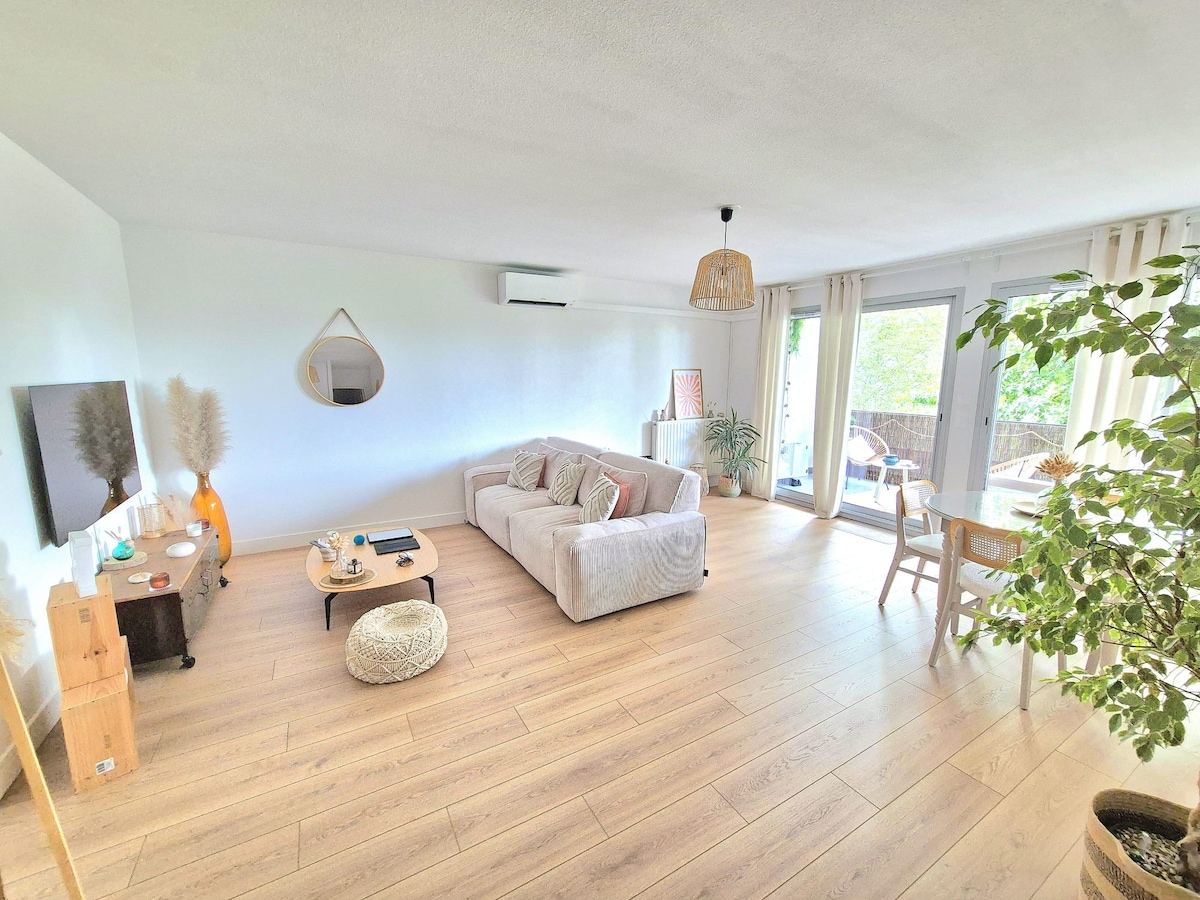 Stay in this large, bright and comfortable apartment, located in Bordeaux in the municipality of Bruges. 2 minutes from Bordeaux Lac beach, the sailing school and the ring road. Close to the Matmut stadium, the Parc des Expositions and the Bordeaux Lac Shopping Centre. Enjoy a neighbourhood well served by bus and tram, with all amenities nearby (bakery, restaurant, pharmacy, physiotherapist, beautician, and Calicéo). For a relaxing or professional stay!