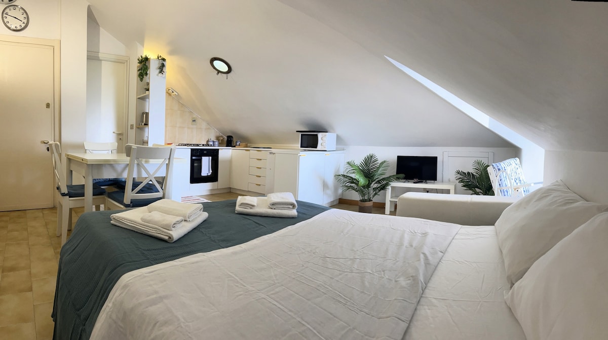CIN IT009013C2HM7CUCKU Stylish open space studio apartment in XVth century house, approximately 45 sqm, with fully equipped kitchen, bathroom with shower, dining area and a small terrace. Free private carparkVerezzi is renowned not only for the clean blue sea but also for sport activities, such as rock climbing, mountain bike, downhill cycling and walking trails. Bike parking. STAY TAX TO BE PAID DIRECTLY IN CASH upon arrival at the rate of €1.50 per person per day.