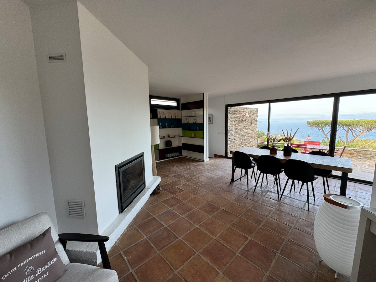 Relax at this peaceful spot, surrounded by nature. Breathtaking view of the mountains (Les Maures) and the sea. 5-minute walk to nature reserve or communal pool/tennis courts/ping-pong/swings (free access). Recently renovated and fully air-conditioned/heated. Fenced. New baby cot, changing mat and high chair available upon request. Beach nearby: 15 minutes by car or 30 minutes by bike. Quiet office space with wifi. Linens and bedding provided. 7 in beds/bedrooms, 2 in sofa bed/living room.