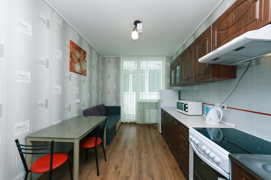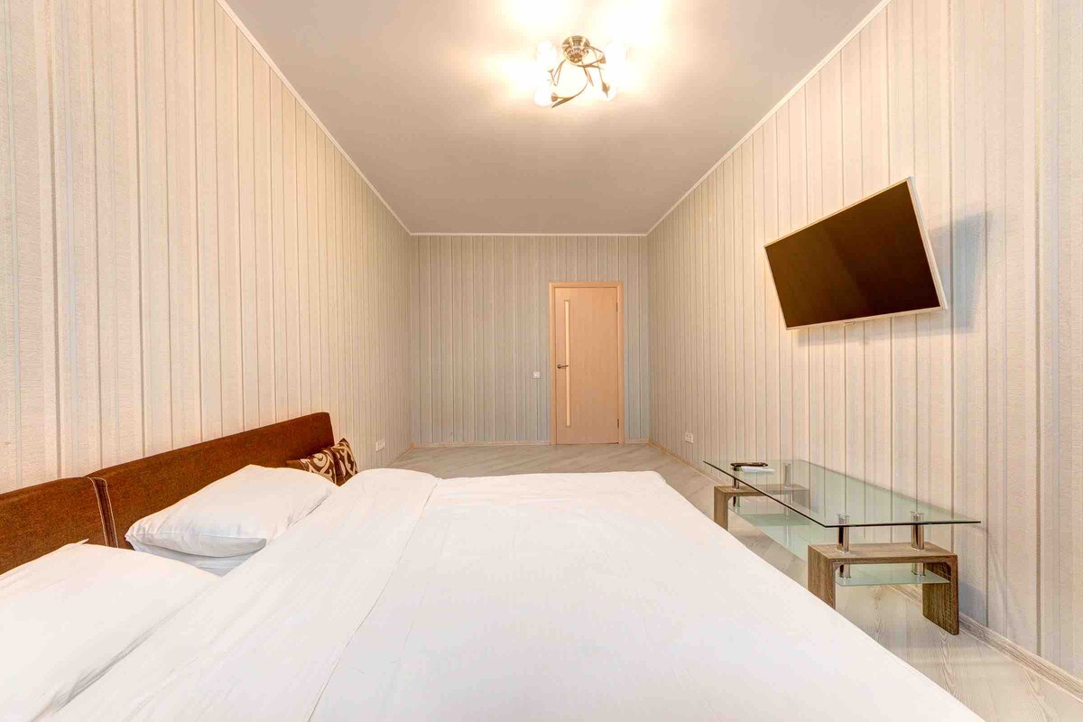 A full-fledged 2-room apartment with 2 separate bedrooms with large beds in each room and a studio kitchen. Designed for a comfortable stay of 1-4 people. Perfect cleanliness, snow-white bedding and towels, disposable slippers and bath accessories.