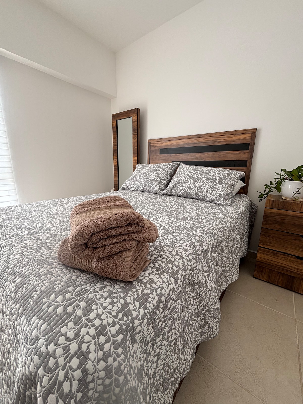 Brand new luxury furnished apartment, 2 bedrooms, laundry area, equipped kitchen, a terrace to enjoy a nice afternoon a few meters from the pool, 2 parking spaces, the condominium has direct access to the commercial plaza (Real Center) where you can find restaurants, Cinepolis, Starbucks, laundry and Sam's supermarket. You have access to the gym, swimming pool, game room, and 24/7 security. We can issue an invoice.