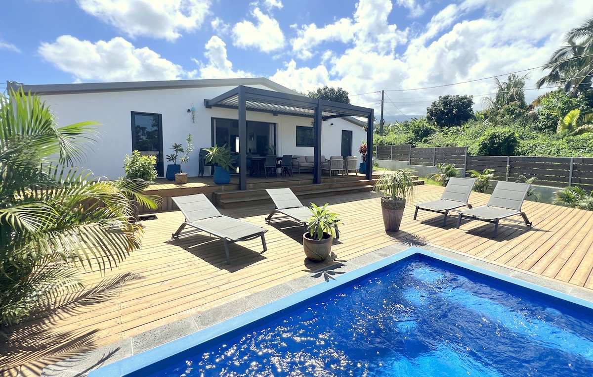 Quiet and charming, in a tropical garden. The studio with its small equipped outdoor kitchen and private terrace is independent of the house. Swimming pool and kiosk with free access to enjoy the evening sunset over the Indian Ocean, around a cocktail... Close to Boucan Canot Beach, its bars and restaurants (10-minute walk) Shops and bus lines nearby (5-minute walk).