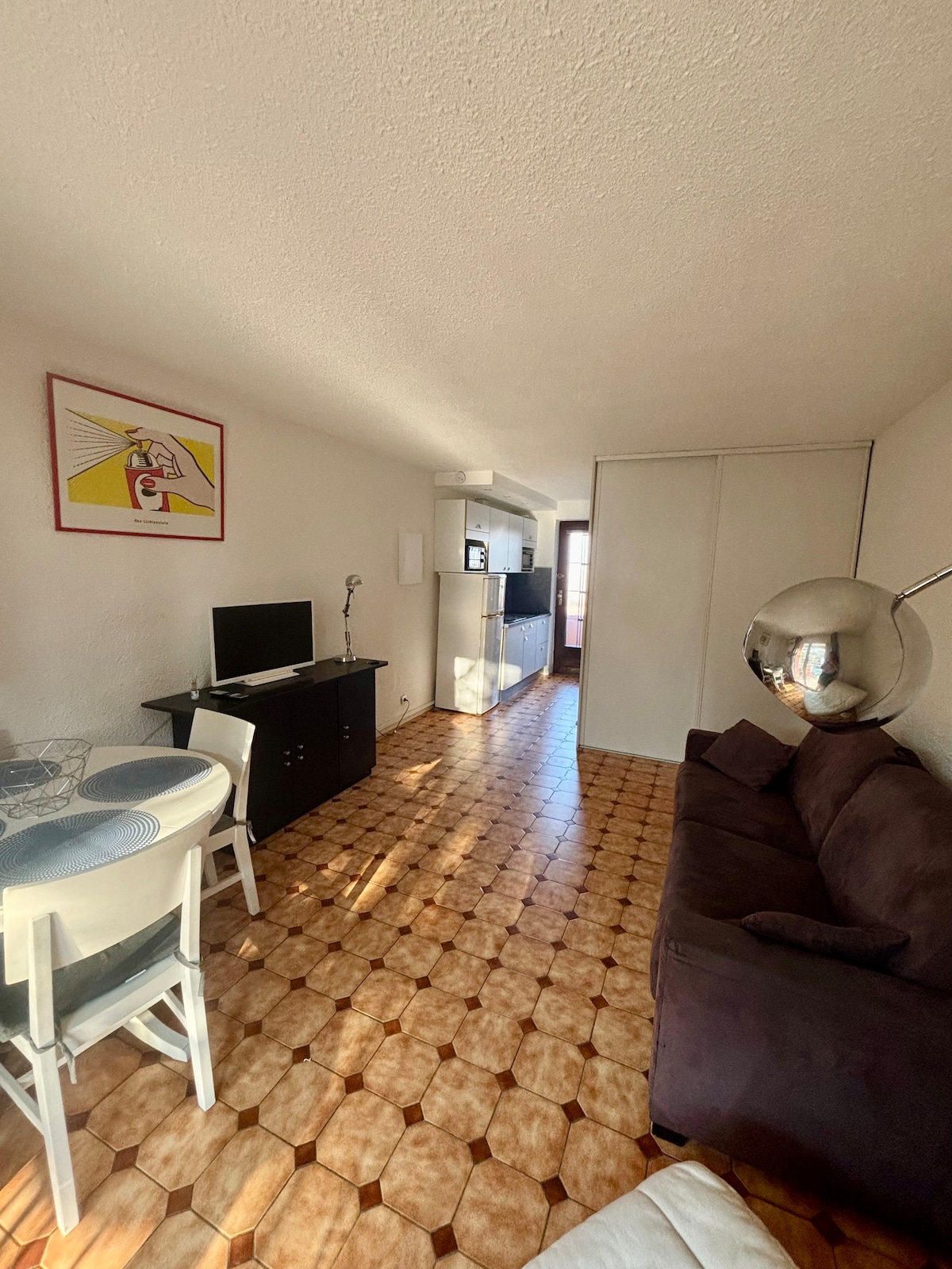 Come and spend a pleasant stay in this F2 apartment, new, crossing, south facing. You can enjoy its beautiful terrace with its quality amenities: air conditioners and TVs (Netflix) living room and bedroom, additional double bed sofa bed , dishwasher, washing machine, coffee maker, wifi. Beach 100m away, shops, restaurants, Casino, train station, Marina. Children's amenities:bed and high chair available on request. Parking 4 min walk (€8/day)
