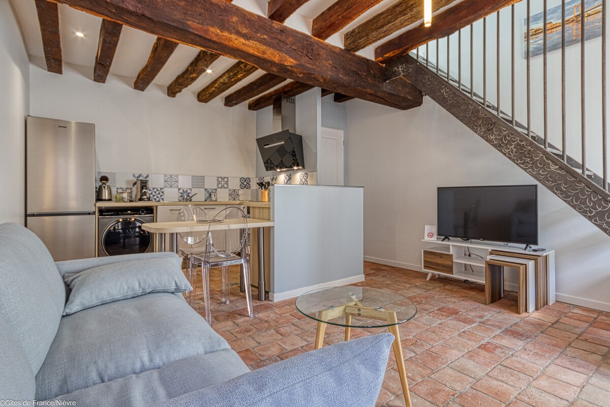 LE DONJON is located in the historic center of Dijon. This duplex nestled in an 18th century tower offers magnificent views of the city's historic monuments. From your room you can see Notre-Dame Church as well as St-Michelle Church or the Philippe Le Bon Tower and the Grand Théâtre. LE DONJON is located in the historic center of Dijon. This duplex nestled in an 18th century tower offers a magnificent view of the city's historic monuments.