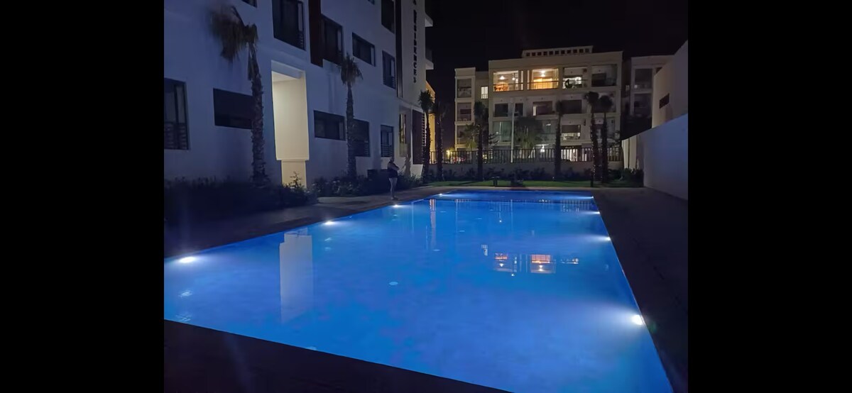 Ideal location: Between Casablanca and Rabat, 5 minutes from the beach and 10 minutes from the train station. • Modern spaces: Comfortable living room with TV, 2 bedrooms (1 double bed and 2 single beds), and a well-equipped kitchen. • Pleasant view: Private balcony overlooking the pool, perfect for relaxing. • Amenities: Access to the shared pool, free 200 Mbps Wi-Fi, and secure parking. • Quiet residence: 24/7 security for a peaceful stay.