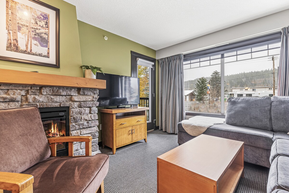 Welcome to your peaceful and stylish Canmore getaway! This luxurious condo is just a 10-minute walk from the town centre, putting shops, restaurants, and trails right at your doorstep. Relax by the cozy stone fireplace, sink into a plush king-sized bed, or host extra guests on the high-quality sofa bed. Enjoy bright, airy living space, fully equipped kitchen, in-suite laundry, complimentary parking, and 1 GB high-speed Wi-Fi. Ideal for adventure or relaxation in the Rockies.