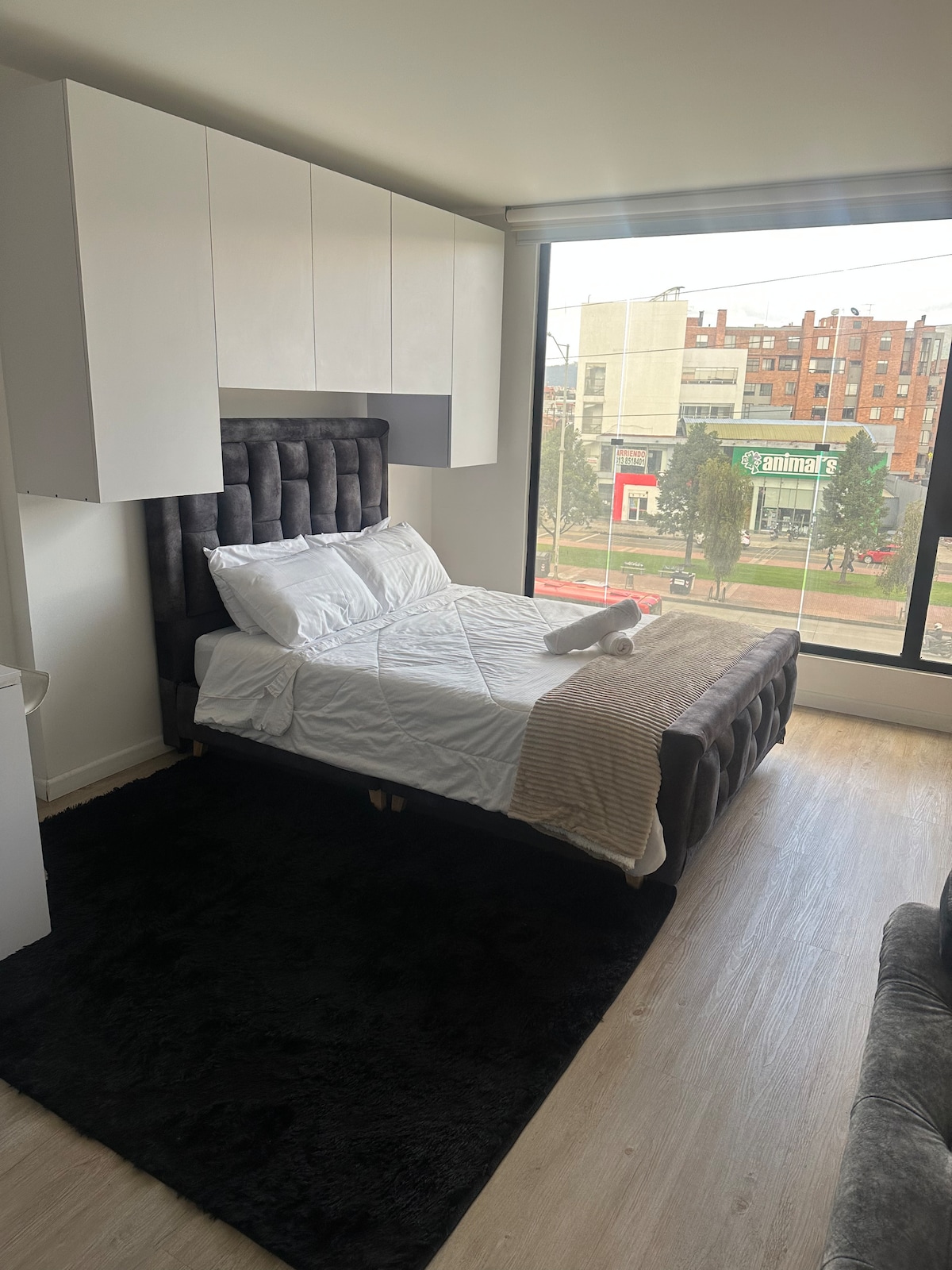 Stay at our stylish studio apartment, within walking distance of the best restaurants, shopping districts, and posh neighborhoods. The city is undergoing a few road repair projects; several streets are closed due to the construction of the Bogotá metro. However, you should not have issues accessing our building. Our apartment has a large private balcony, offering panoramic mountain and city views. You’ll appreciate the uninterrupted views from our 10th-floor escape.