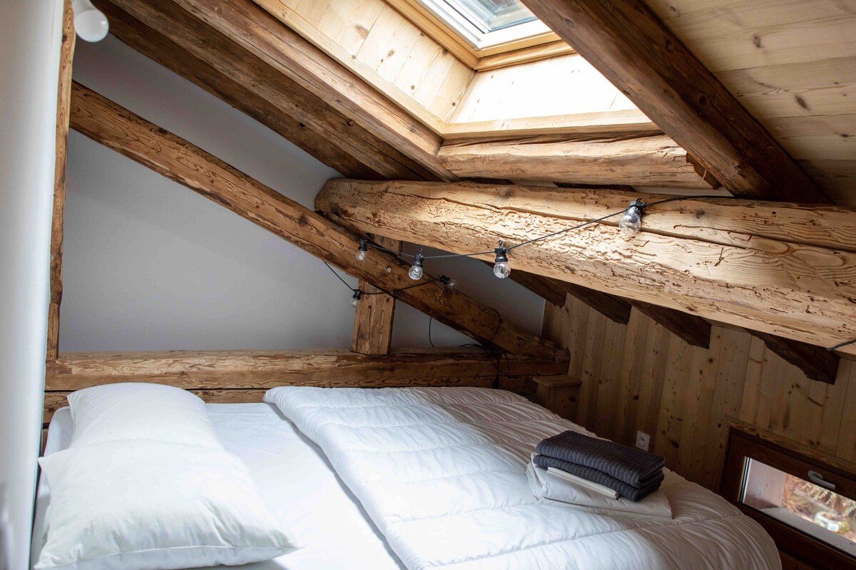 Incredible: your cottage for 2 people in a typical Courchevel village. (Le Grenier) You will appreciate its materials and amenities; everything to recharge your batteries after a day of skiing or hiking with a real Jacuzzi Le Mazot is a 10-minute drive from the Courchevel slopes and the free shuttle to the village morning and evening. Bozel shops and restaurants are a 3-minute drive away. Many opportunities for walks from the cottage