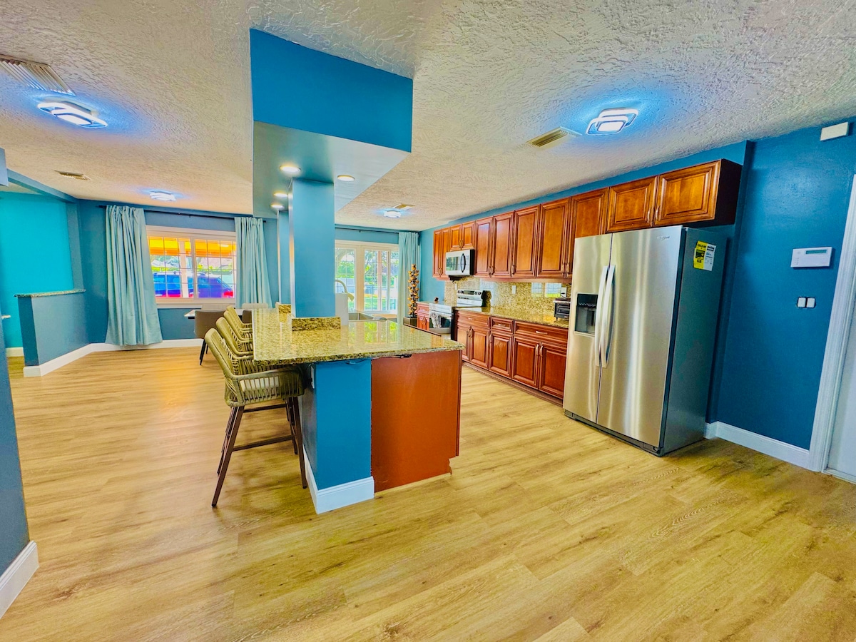 Welcome to our Lite Brite Beach Escape! No matter your age or interest, we have something for everyone! Heated & cooled pool ⭐ Mini-golf ⭐Lite Brite wall⭐Outdoor movie theater⭐ Pong⭐Bikes ⭐Beach gear ⭐Games ⭐Slide & playhouse We invite you to explore your creative and fun side while experiencing the beauty and wonders of Florida on the Gulf Coast! We provide a long list of basic amenities so your stay is seamless and stress-free. Just pack your personal belongings and we have the rest covered!
