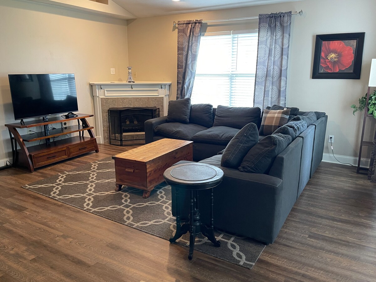 Beautiful townhome in a well established, quiet, family neighborhood! This home offers a split floor plan with the main living areas (kitchen, dining, living room, and half bath) downstairs and 3 spacious bedrooms upstairs. The master features a king size bed and private bathroom. There are two additional bedrooms (one with a twin over full size bunkbed and one with a queen sized bed and traditional desk/workspace) that shares a hall bathroom with a stand up shower and double vanities!