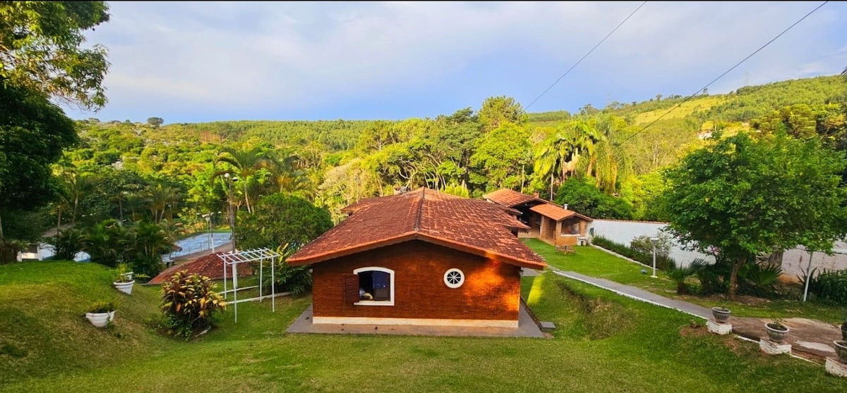 Spectacular chalet located on top of a beautiful mountain between Bragança Paulista and Tuiuti. Market and nearby restaurants with delivery. Lake for fishing. Organic orchard and vegetable garden, heated pool without chlorine, farm animals, soccer field, barbecue, fireplace. Exclusive room for home office with great Wi-Fi. Pets are very welcome. Bed and bath linens are provided. Loud noise is not allowed. The property has one more house also rented for the season.