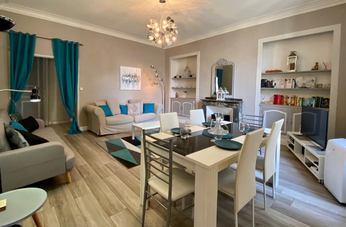 🔑 Put your bags down in the heart of the bastide, the historic center of Carcassonne, just 20 m from Place Carnot 🍷! You will be close to restaurants, markets, and lively alleys! 🌿 The spacious, bright and quiet apartment has a pleasant private patio: ideal for al fresco dining or coffee breaks in the shade. 🏰 The medieval city and the Canal du Midi are less than a 10-minute walk 🚶♂️ 🚄 The train station is only 600 m away.