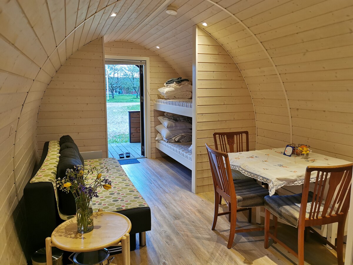 Enjoy your vacation in one of our 8 beautiful tiny houses. From the double bed, you have views of the fjord and idyllic Bjerregård Harbor. You can make your own breakfast in the small kitchenette with 2 hotplates and kitchen utensils, or you can order breakfast from us (for an extra fee) Enjoy the sunrise with steaming hot coffee at the sight of thousands of migratory birds at the Tipperne bird sanctuary. If you want to go to the North Sea, it is only a 15-minute walk away. Bed linen and towels are included in the price.